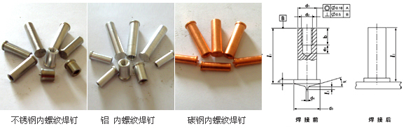 儲(chǔ)能內(nèi)螺紋焊釘有:碳鋼,不銹鋼,鋁 (單位:mm)
